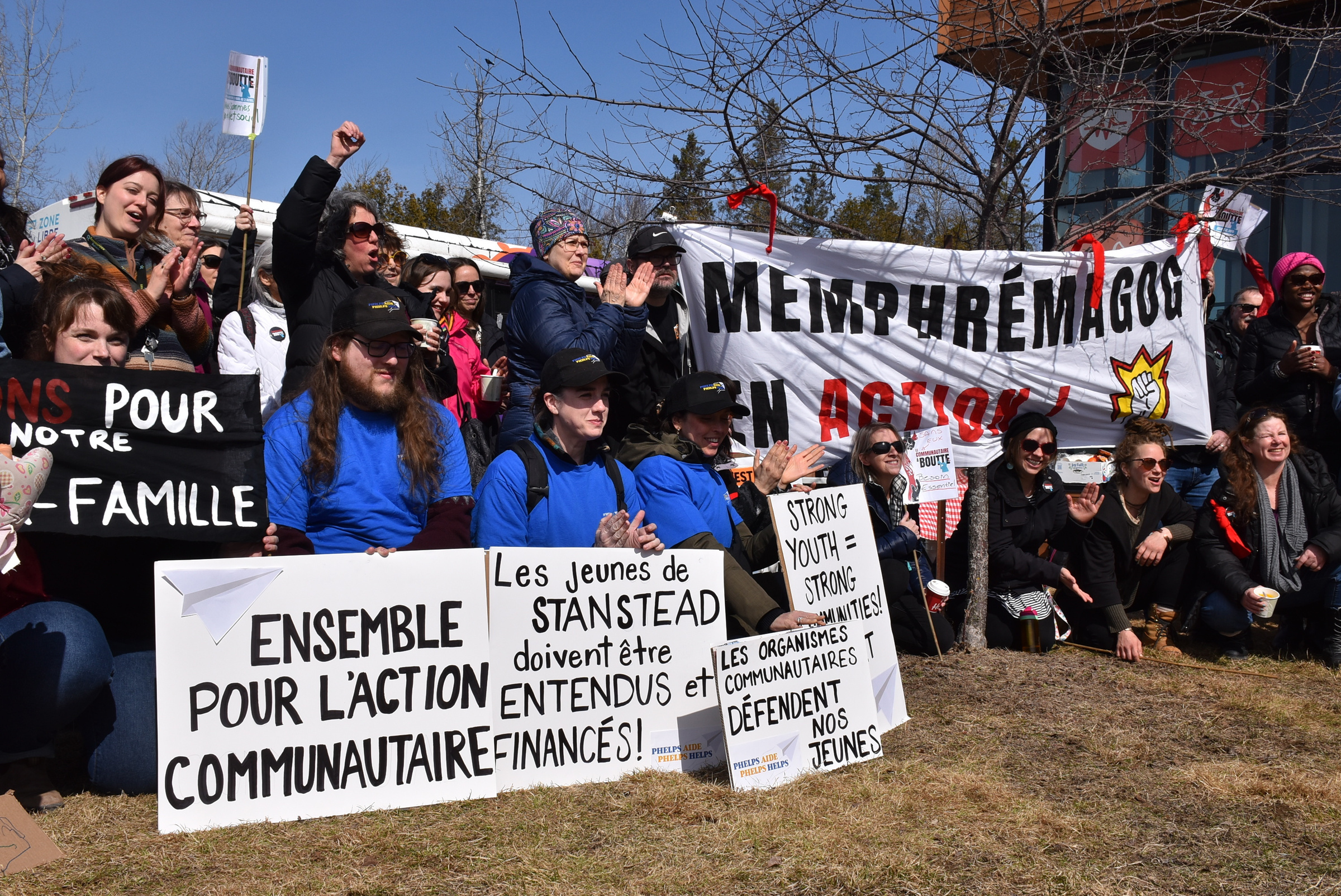 Deux organisations de Stanstead, le Centre d’action bénévole (CAB) et Phelps Aide, assistaient à cette mobilisation en guise de solidarité avec les autres groupes de la région. “Les jeunes de Stanstead doivent être entendus et financés” était notamment visible sur l’une des affiches.
