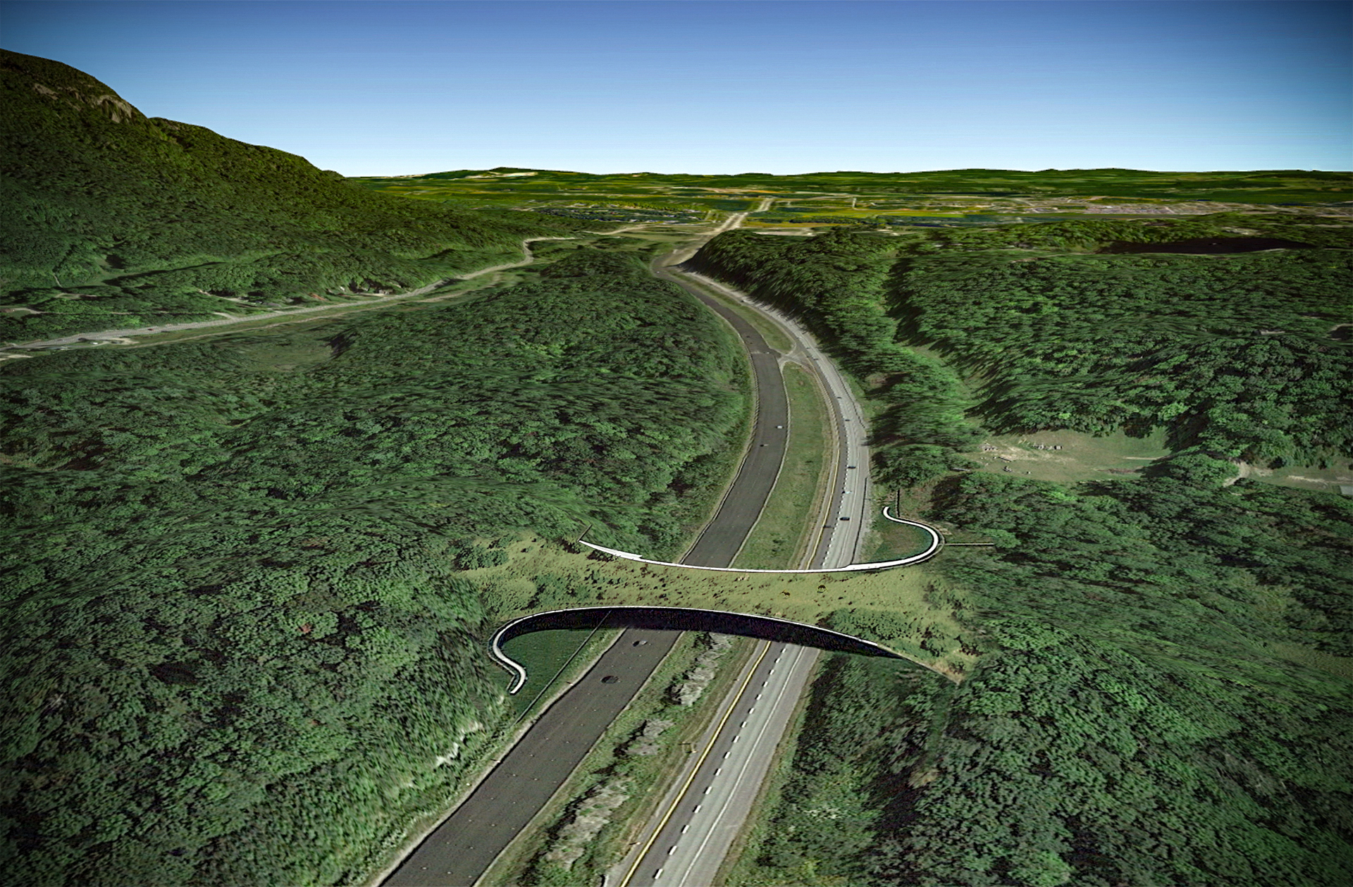 Voilà pourquoi on propose des passages sous la route pour les petits animaux et des passages supérieurs et des ponts écologiques pour la grande faune comme des lynx roux, cerfs de Virginie, orignaux, coyotes, ours noirs, etc.