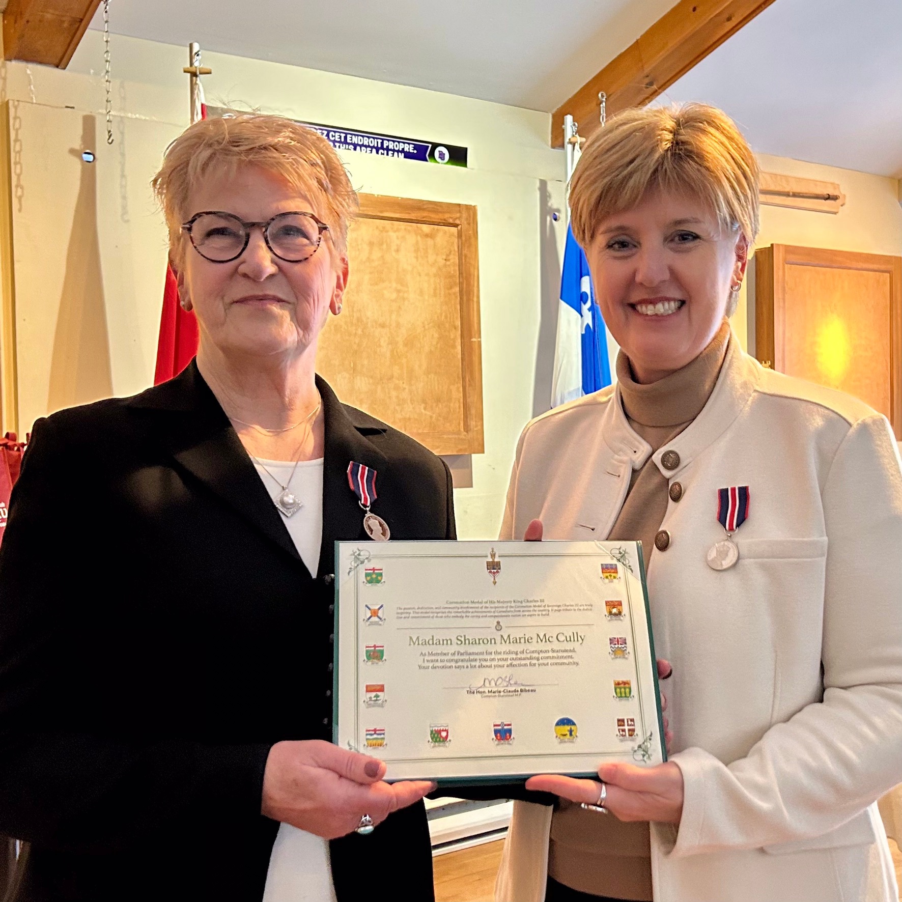 MÉDAILLE. Ayant apporté une “contribution importante à leur pays, leur province, leur région ou leur communauté”, 21 citoyens de la circonscription de Compton-Stanstead se sont vu décerner la Médaille du couronnement du Roi Charles III par leur députée fédérale Marie-Claude Bibeau, le 16 janvier dernier au Club de golf du Vieux Lennoxville.