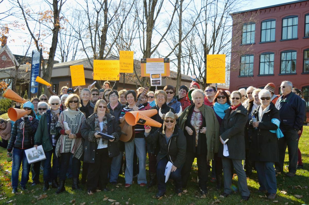 Plusieurs représentants des organismes communautaires de la MRC de Memphrémagog se sont réunis devant le centre communautaire de Magog, aujourd’hui (8 novembre), afin de faire valoir leurs revendications.