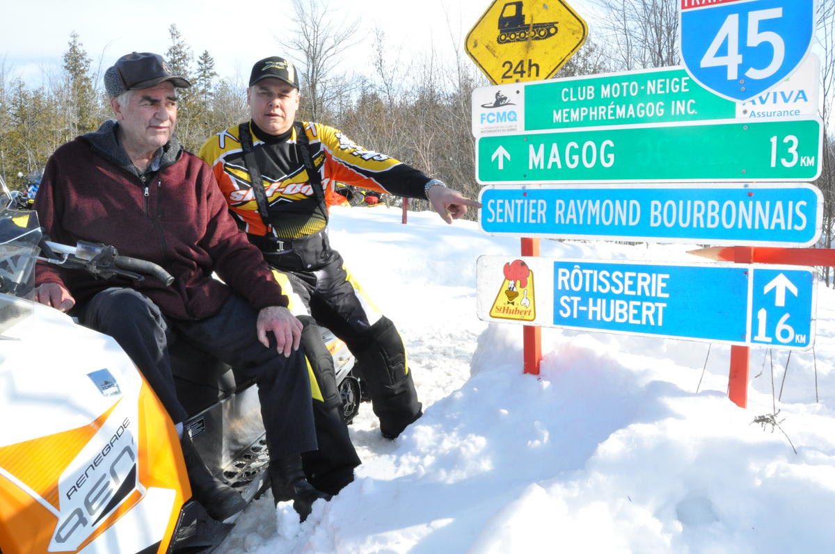 «Tout ce projet est né grâce à la détermination de Raymond Bourbonnais et son groupe de bénévoles. Il désirait ardemment relier la portion Bonsecours-Eastman et Magog, indique Patrick Côté, président du Club les motoneigistes du Memphrémagog. Tant et si bien que l’on a décidé que ce sentier allait porter le nom de Sentier Raymond Bourbonnais.»