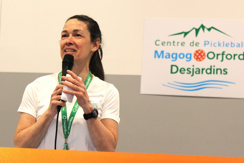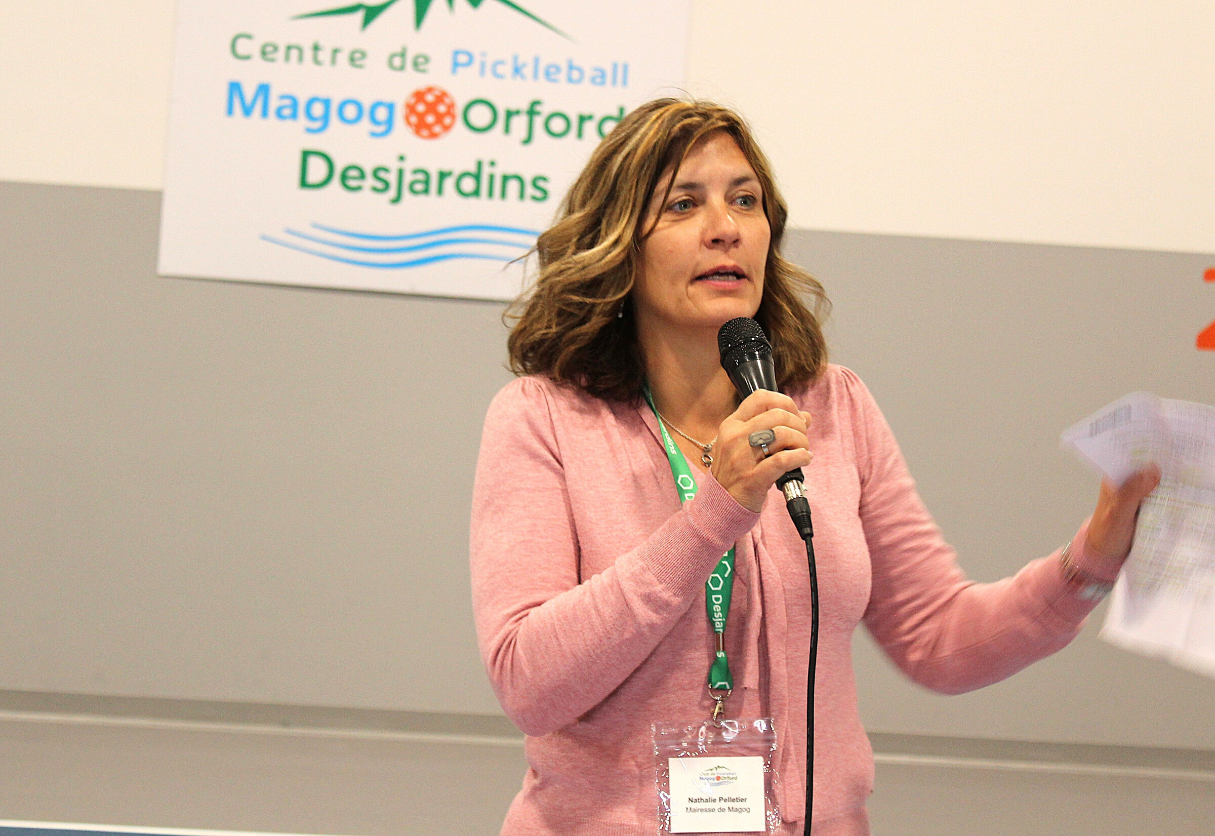 La mairesse Nathalie Pelletier a souligné le caractère inclusif du pickleball. (Photo Le Reflet du Lac – Patrick Trudeau)