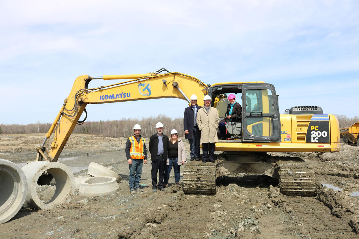 TRAVAUX. La mairesse de Magog, Vicki-May Hamm, le directeur général Jean-François D’Amour et le coordonnateur au développement industriel, Donald O’Hara, ont participé à la première pelletée de terre des travaux du prolongement du boulevard Poirier, dans le parc industriel de Magog, hier (25 avril).