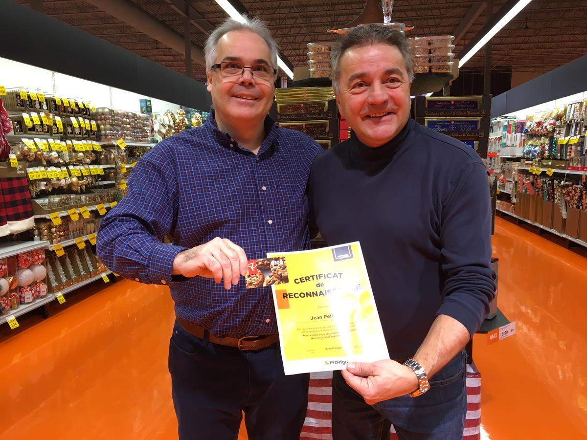 En début de matinée, ce dernier a reçu un certificat de reconnaissance des mains du propriétaire du magasin Provigo Le Marché de Magog, Michel Frigon, dans le cadre de la campagne Moments chanceux. «C’est très flatteur d’être reconnu par sa communauté. Je suis entouré d’une équipe extraordinaire qui donne beaucoup de son temps. Seul, je ne pourrais pas faire tout ça», d’observer Jean Pelchat.