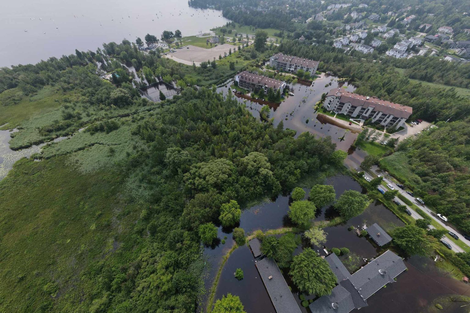 Cette crue historique s’explique notamment par un sol déjà gorgé d’eau qui absorbe difficilement 144 mm de pluie tombés au Vermont et 80 mm à Magog, les 11 et 12 juillet. Le Vermont, là où provient 80 % de l’eau du lac Memphrémagog, avait précédemment connu des précipitations historiques, gonflant le lac d’un mètre d’eau supplémentaire en moins de trois semaines. «C’est gigantesque pour un lac de 42 km de long qui couvre une superficie de 100 km carrés environ», image M. Arteau.