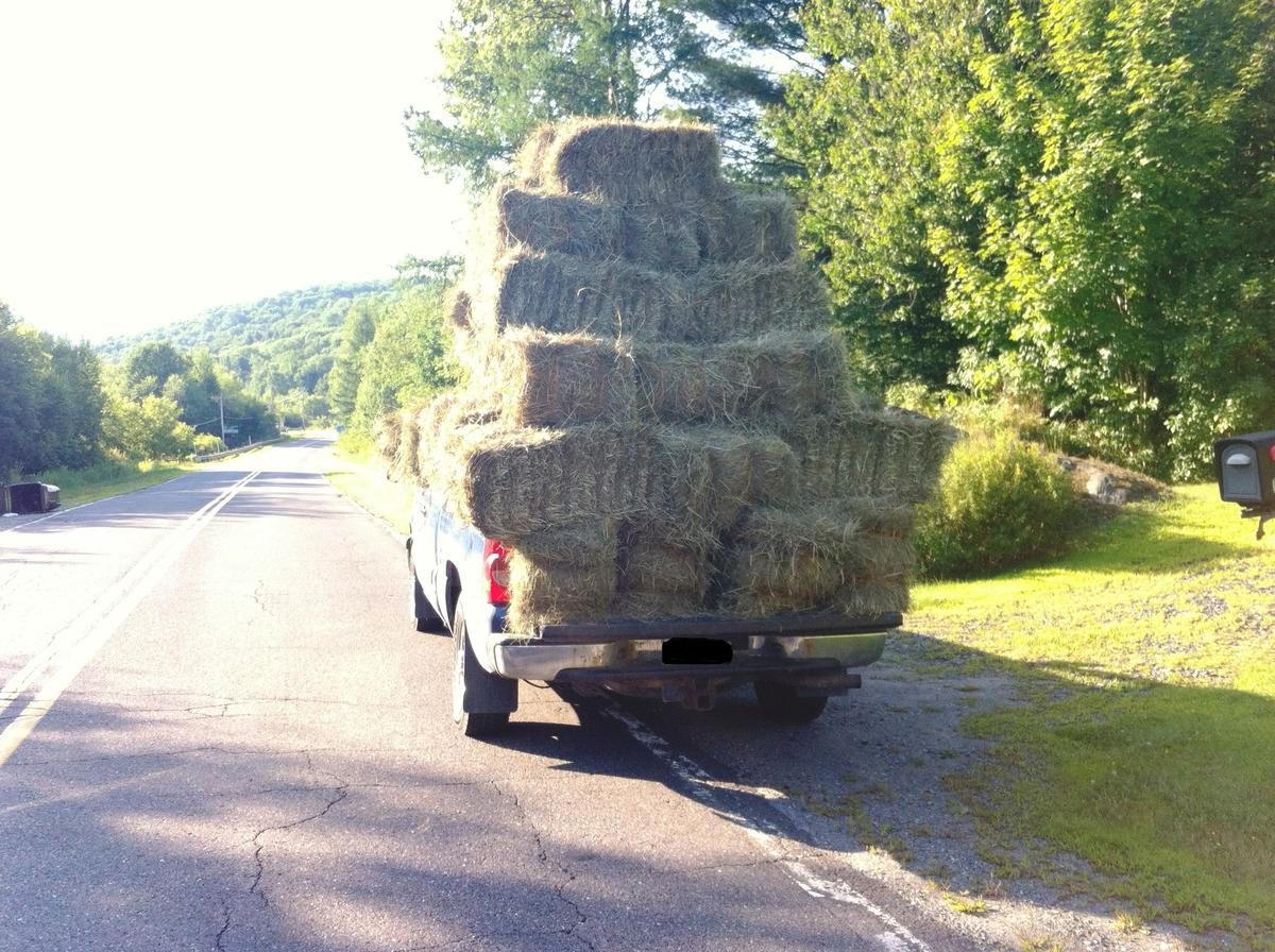 Un chargement de balles de foin n’est pas inaperçu sur le chemin Vallée-Missisquoi à Potton, le week-end, surtout qu’un policier circulait par hasard dans le secteur.