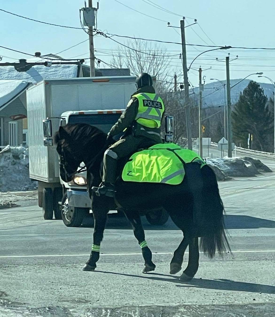 Comme le rapporte la sergente Aurélie Guindon, de la Sûreté du Québec, quatre policiers ont effectué une surveillance à l’intersection des routes 245 et 112. Parmi eux se trouvaient deux membres de l’équipe équestre, qui ont porté une attention particulière au non-port de la ceinture de sécurité.