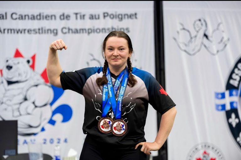Neuf mois après avoir débuté la pratique de cette discipline (qu’on appelle communément le tir au poignet), la jeune femme de 23 ans a décroché la troisième place du bras droit chez les femmes seniors de 132 à 154 lb, lors de la compétition nationale présentée à Gatineau, les 29 et 30 juin dernier.