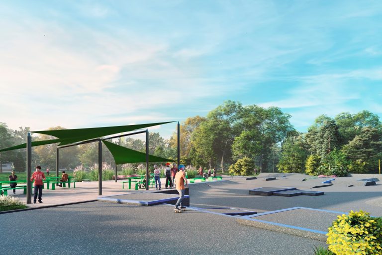 L’ajout d’éclairage sportif et d’une petite piste de style ” pump track ” ainsi que l’aménagement d’une zone sans obstacle pour pratiquer les manoeuvres compléteront les installations. “Il y aura également une place publique ombragée, avec du mobilier urbain, qui deviendra un lieu de rassemblement communautaire et intergénérationnel”, espèrent les élus par voie de communiqué.
