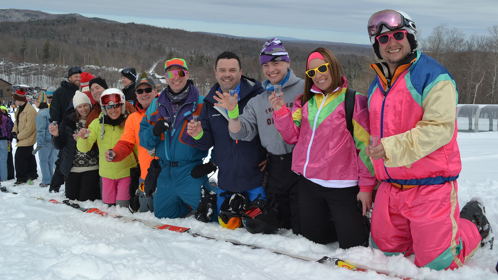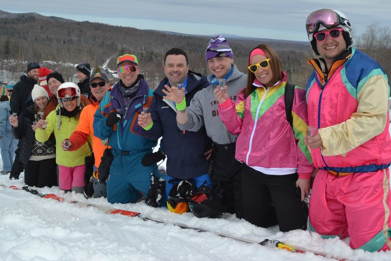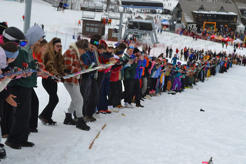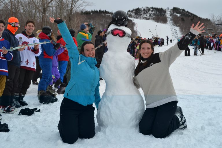Comme le dit si bien l’adage : le party était pogné au pied du Mont-Orford. Cordés et liés par une longue chaîne de skis usagés, les participants étaient fous de joie. À tel point que le « ski-shooter », qui consiste à engloutir successivement un shooter d’alcool installé sur des skis, a été quelque peu bousillée en raison du manque de communication. Quelques secondes avant le grand lancement, les premiers en ligne ont en partie gâché l’effervescence de la manœuvre en s’élançant trop tôt. Cependant, cela n’a pas empêché les autres de savourer le moment ainsi que leurs petites boissons alcoolisées.