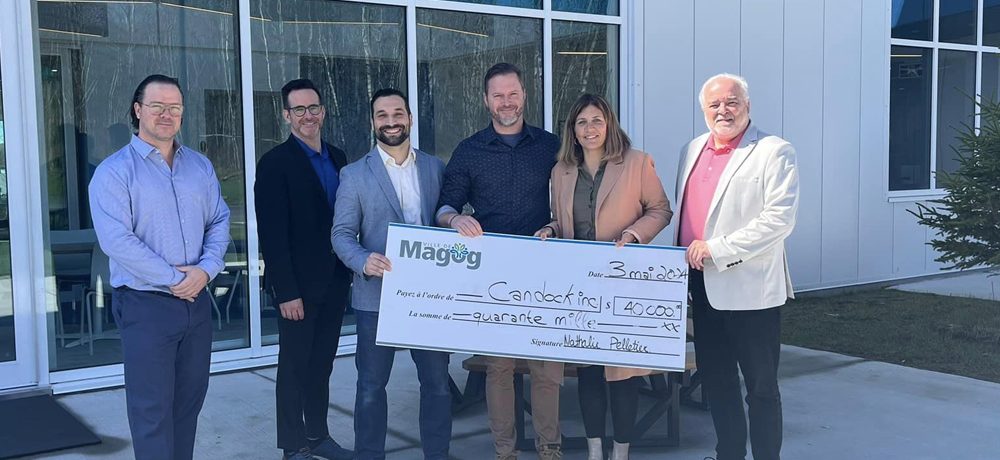 BLA BLA Magog accorde une subvention de 40 000 $ à l’entreprise Candock pour souligner l’ouverture de la nouvelle usine dans le parc industriel.