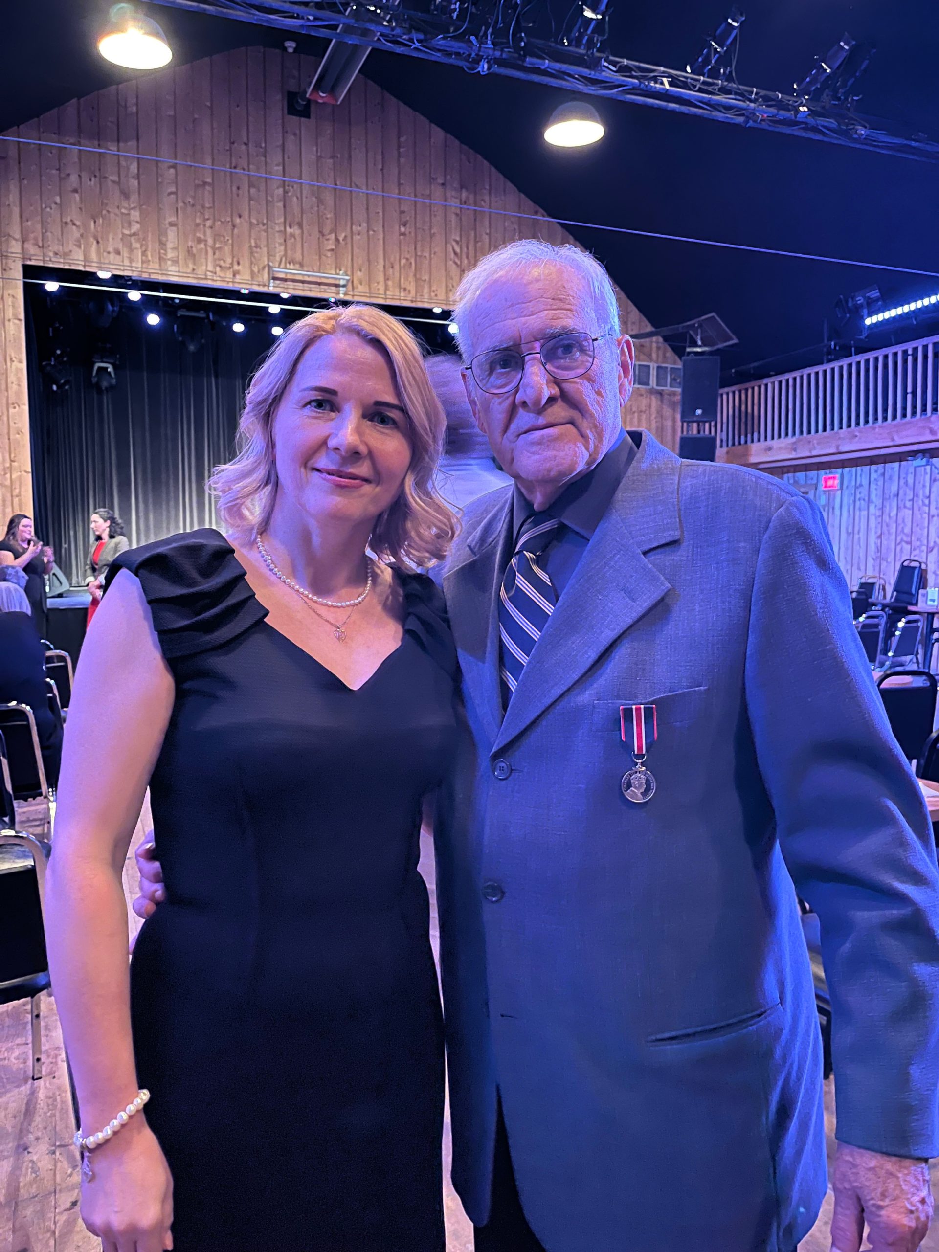 Luda a accompagné Arthur Rhéaume lorsque ce dernier a reçu la Médaille du couronnement du Roi Charles III. (Photo gracieuseté)