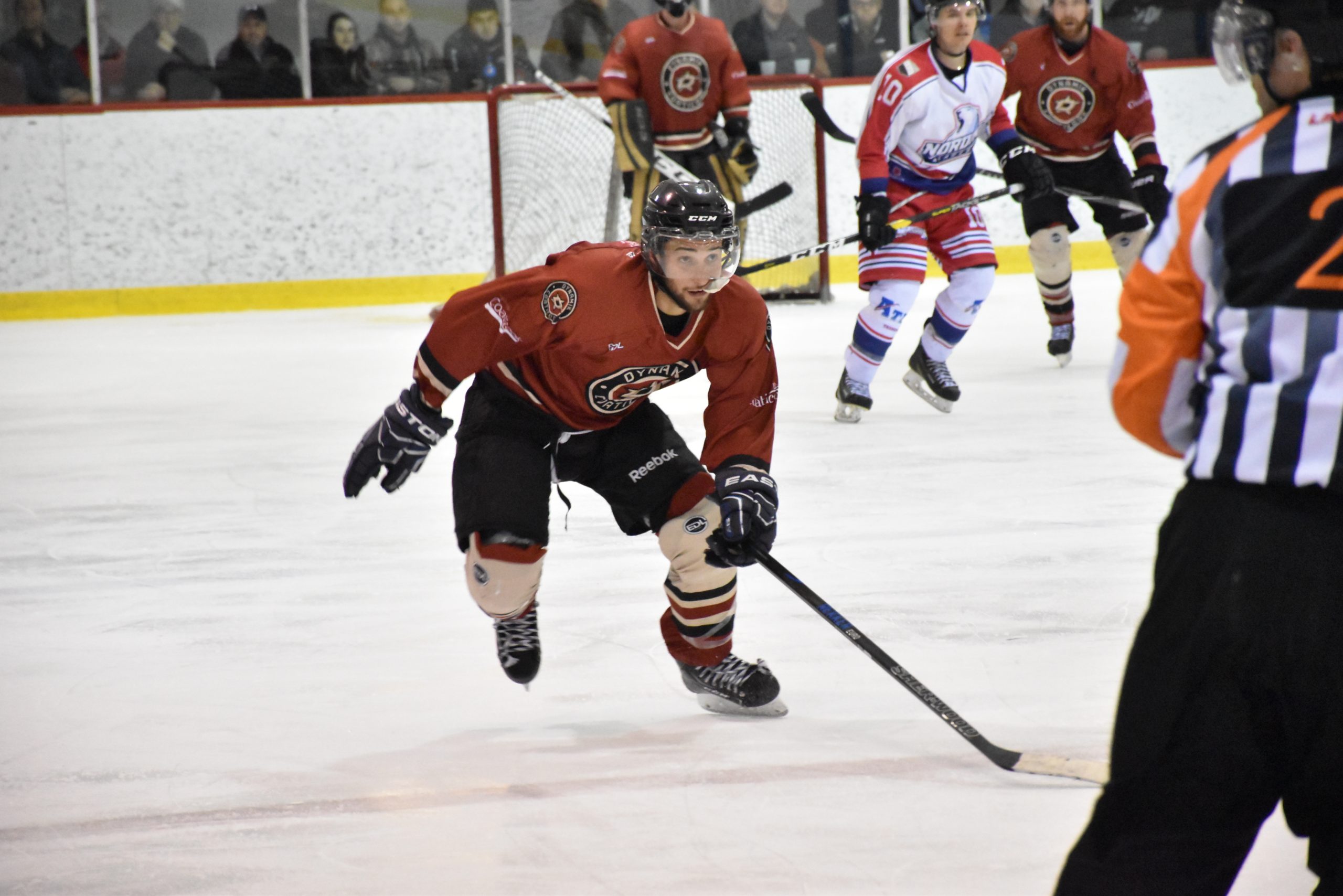 HOCKEY. Confronté à la fermeture temporaire du Centre récréatif Gérard-Couillard en raison de travaux, l’état-major du Dynamik Service agricole de Coaticook (hockey senior) s’est tourné vers l’aréna de Magog pour tenir son camp d’entraînement. Une situation qui a fait l’affaire de plusieurs joueurs.