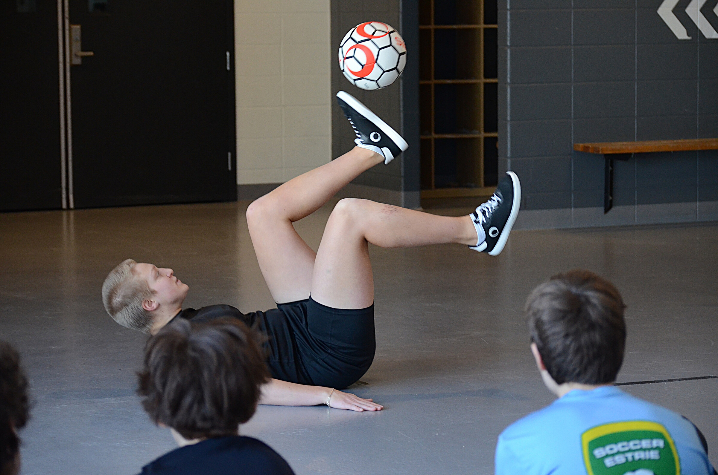 Admiratif devant la jeune prodige, le directeur sportif de Soccer Magog, Stéphane Asselin, a fait valoir que les athlètes magogois avaient tout à gagner à apprendre quelques trucs de Mathilde Fortier. “La jonglerie et le maniement du ballon sont des éléments essentiels dans une partie de soccer”.