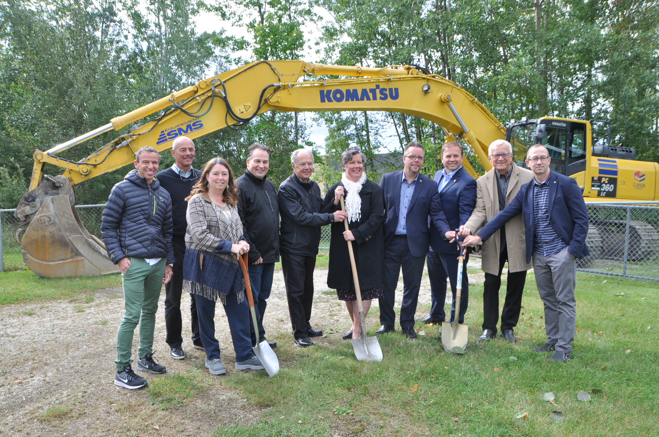 MAGOG. Les membres du comité et les différents partenaires ont donné le coup d’envoi aux travaux entourant la future piste d’athlétisme à l’école secondaire de La Ruche, mardi matin (25 septembre). La livraison de ces nouvelles installations, évaluées à tout près de 1,9 million de dollars, est prévue pour la mi-juin 2019. Grâce à cette nouvelle piste d’athlétisme, le responsable du comité, Jean-Guy Gingras, espère que Magog soit l’hôtesse de plusieurs événements d’envergure, dont les Jeux du Québec, qui nécessitent d’ailleurs ce type d’installation pour la tenue d’un tel rendez-vous sportif. Notons que cette pelletée de terre coïncidait avec l’anniversaire de Christian Vachon (à l’extrême-gauche), l’un des grands artisans de ce projet.