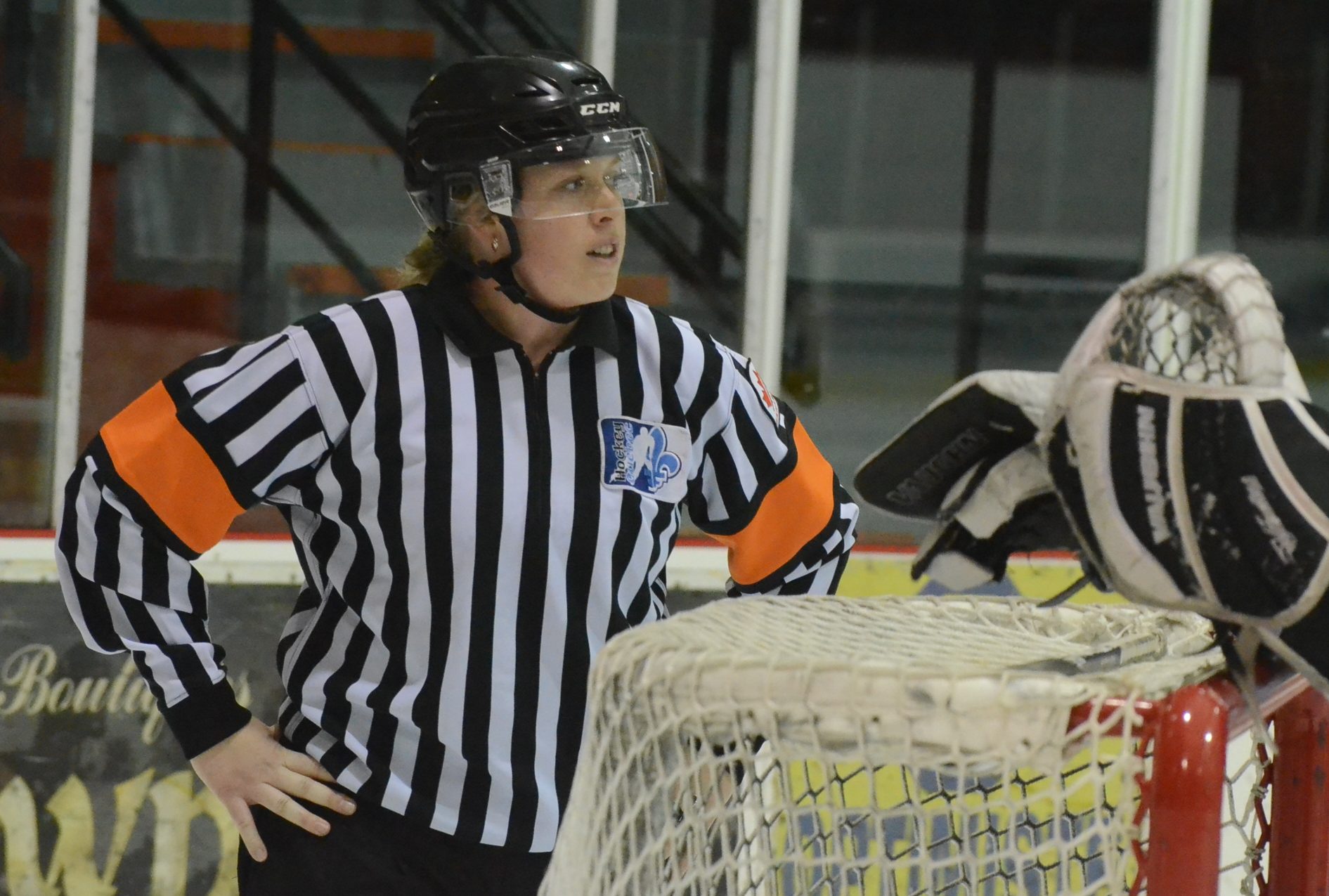 Elle suit les traces de Mélanie Bordeleau, qui fut la première femme à arbitrer dans la Ligue de hockey midget AAA, lors de la saison 2013-2014.