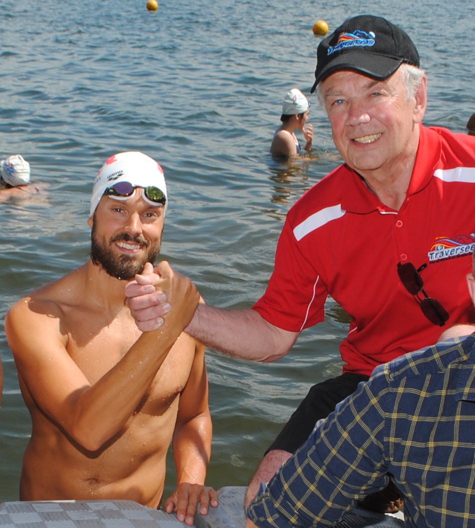 L’ancienne vedette de la Traversée internationale du lac Memphrémagog, Xavier Desharnais, y était présent en compagnie de membres de l’équipe du Québec de nage en eau libre, afin de superviser un week-end d’entraînement.